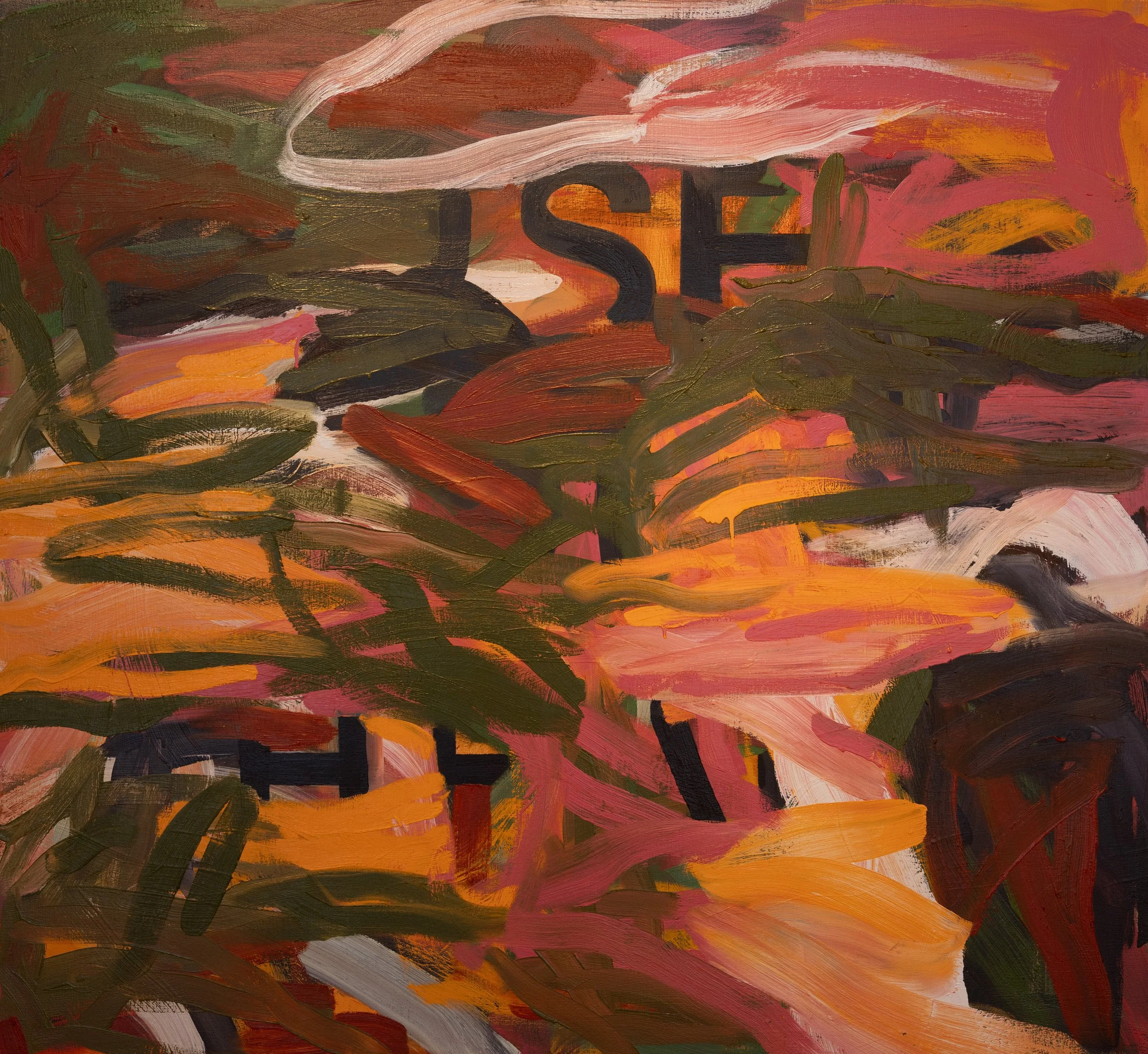 In these paintings, the words are obscured by mark-making to various degrees. The color and materiality of the paint and brushwork convey their own language and participate in both covering up and responding to the graphic nature of the text. The color palettes and compositions provide a dynamism in relationship to the words and their lost vitality.